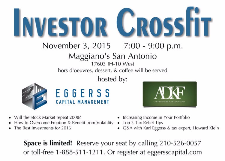Join ADKF and Eggerss Capital Management on Nov. 3 for an evening of investment and tax strategies. This event is free of charge, but seats are limited so RSVP early! To RSVP visit Eggerss Capital Management, or call 210-526-0057. We look forward to seeing you there!