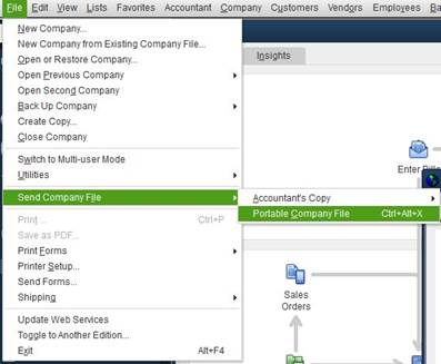 b. Click on: Portable Company File