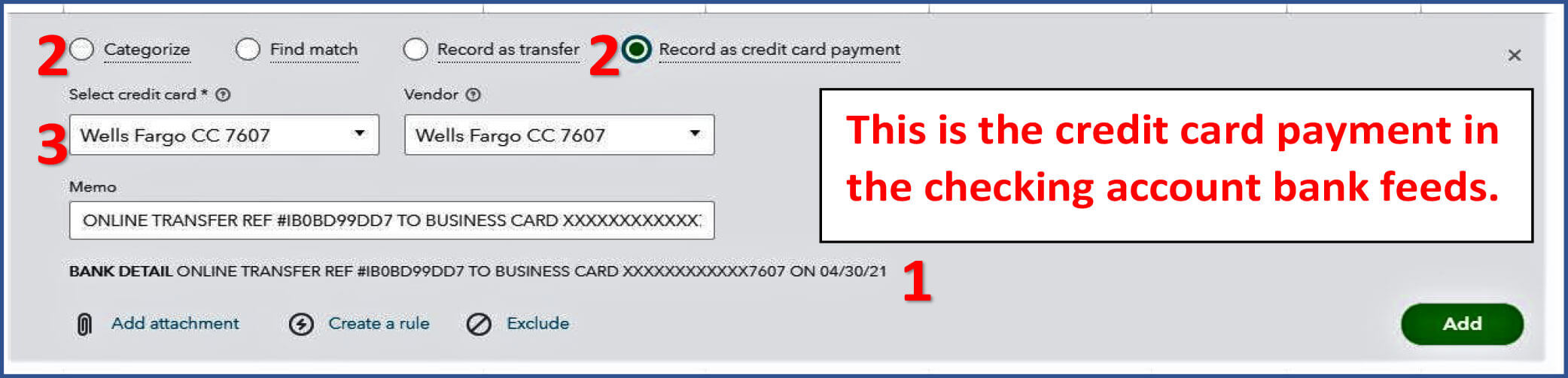 4. Record as credit card payment and ADD.