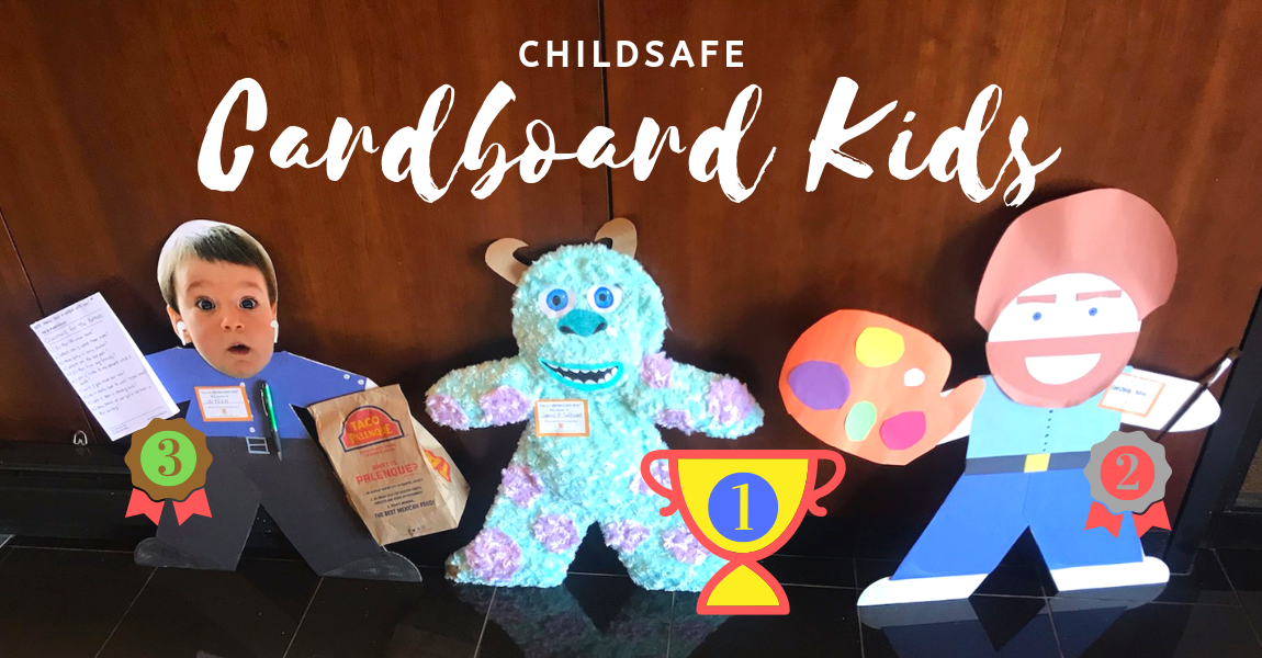On the back of all of our Cardboard Kids is a message from ChildSafe, Hi, Im a Cardboard Kid. I represent one of thousands of abused and neglected children in our community. Take my picture, share my location and spread the word by posting on social media. Do not forget to use #CardboardKidsSA. ChildSafes mission is to restore dignity, hope, and trust to children traumatized by abuse and neglect.